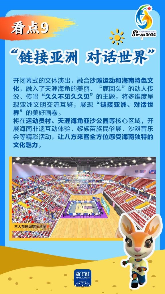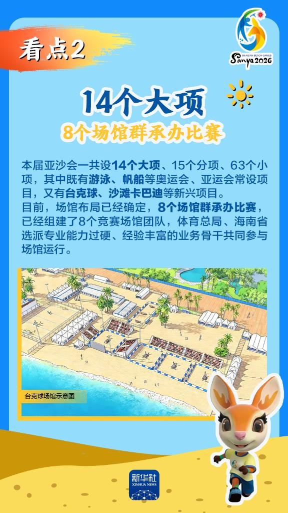 第六屆亞洲沙灘運(yùn)動會(以下簡稱“亞沙會”)將于2026年4月22日至30日在海南三亞舉行,賽事歷時9天。作為海南自由貿(mào)易港封關(guān)運(yùn)作后迎來的首個國際大型綜合性體育盛事,亞沙會都有哪些看點(diǎn)?為何值得期待?國新辦12日發(fā)布會做了詳細(xì)介紹,一起來看。
