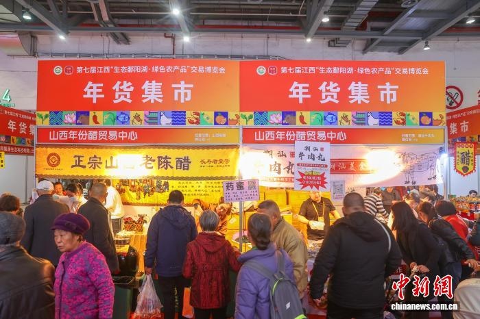 中新社南昌1月16日電 (記者 吳鵬泉)湖南新化紅茶、山西老陳醋、江西贛南臍橙……第七屆江西“生態(tài)鄱陽湖·綠色農(nóng)產(chǎn)品”交易博覽會(簡稱“江西農(nóng)博會”)16日在南昌開幕,逾800家展商攜6000余款產(chǎn)品參展,攪熱江西年貨市場。