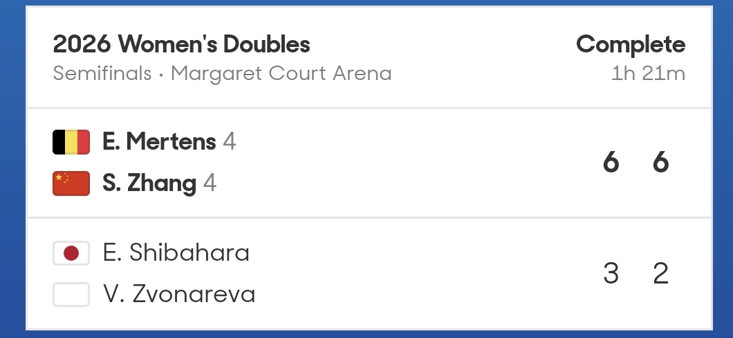 北京時(shí)間1月29日,2026澳網(wǎng)女雙展開(kāi)半決賽較量,中國(guó)球員張帥搭檔比利時(shí)球員梅爾滕斯直落兩盤(pán)擊敗柴源瑛菜/茲沃娜列娃。老將張帥時(shí)隔七年再進(jìn)澳網(wǎng)決賽。