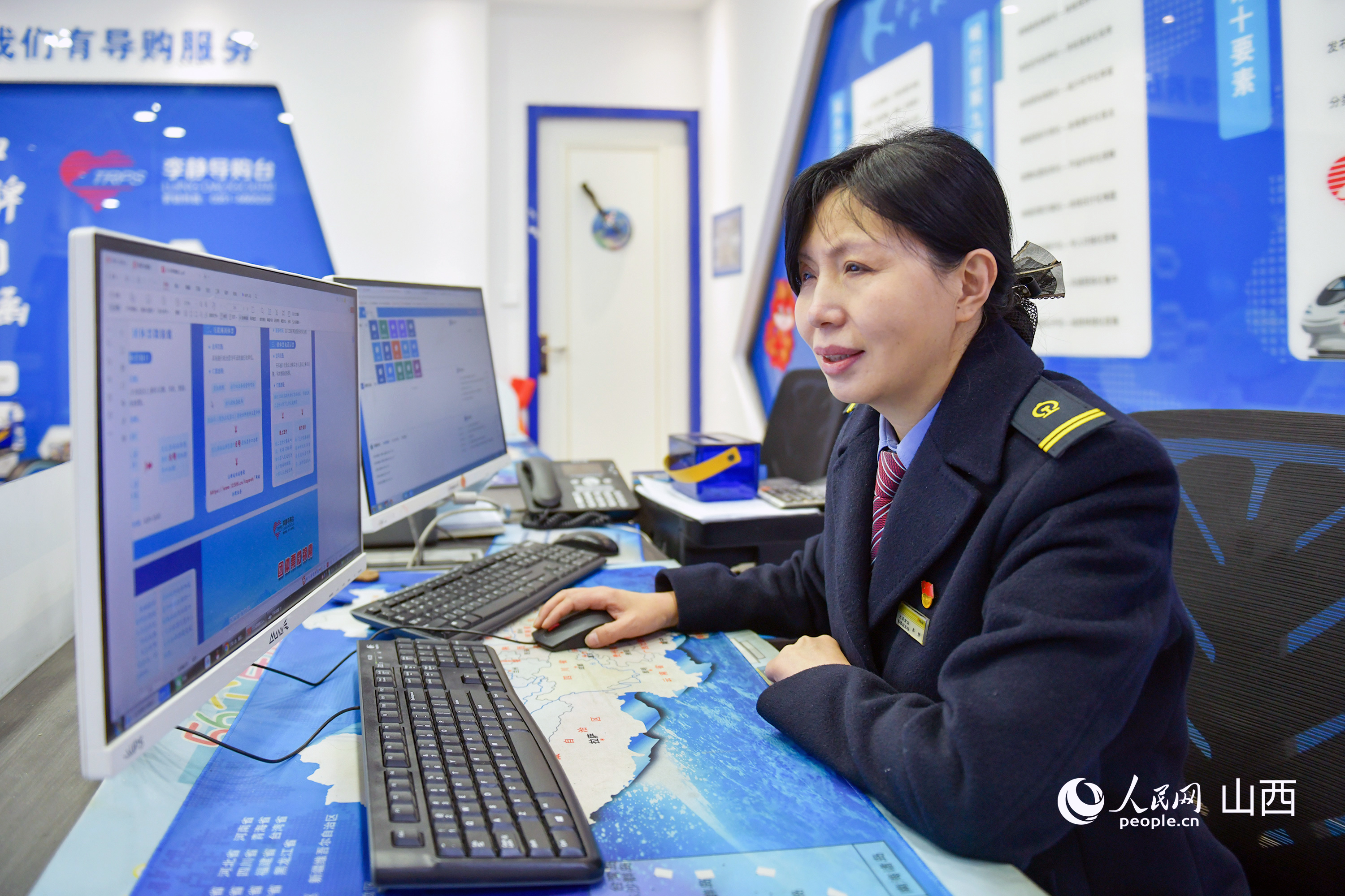 “您別急,我看下訂單?!薄袄铎o導(dǎo)購臺(tái)”帶頭人、太原南站客運(yùn)車間副主任李靜接過旅客手機(jī),快速查看起來。