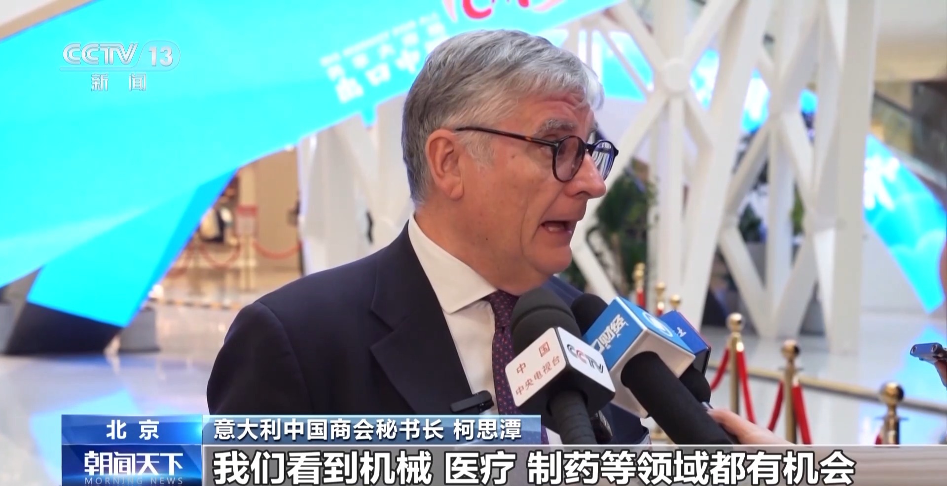 意大利中國商會秘書長 柯思潭:我們看到機械、醫(yī)療、制藥等領(lǐng)域都有機會,還有意大利傳統(tǒng)優(yōu)勢產(chǎn)品,比如時尚和設計等。未來五年中國將提振消費,這對我們來說是額外的機會。
