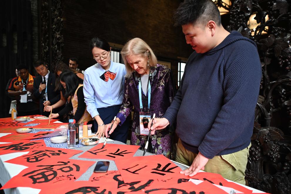 2月6日,亞太經(jīng)濟(jì)合作組織(APEC)2026年第一次高官會及相關(guān)會議的部分與會代表在廣州陳家祠體驗(yàn)中國書法。 新華社記者 鄧華 攝