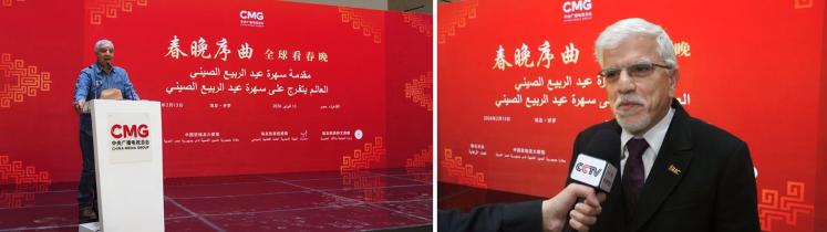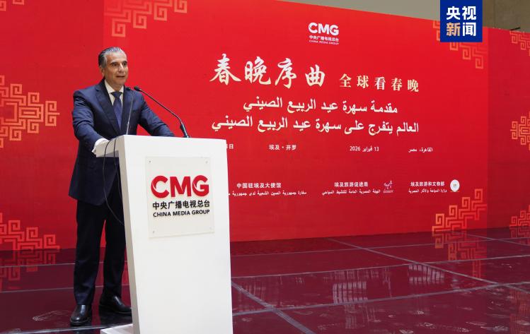 當(dāng)?shù)貢r(shí)間2月13日,“春晚序曲 全球看春晚”埃及專場(chǎng)活動(dòng)在開羅舉行。本次活動(dòng)由中國中央廣播電視總臺(tái)與中國駐埃及大使館、埃及旅游和文物部、埃及旅游促進(jìn)局共同主辦。中宣部副部長、中央廣播電視總臺(tái)臺(tái)長慎海雄作視頻致辭。中國駐埃及大使兼駐阿盟全權(quán)代表廖力強(qiáng),埃及政府代表、埃及外交部亞洲事務(wù)部助哈姆扎,埃及前總理沙拉夫出席活動(dòng)并致辭。埃及考古學(xué)家、前文物部長哈瓦斯,埃及旅游促進(jìn)局主席代拉提芙,埃及外交事務(wù)委員會(huì)執(zhí)行主任伊扎特,巴德爾大學(xué)副校長巴斯歐尼,阿盟非洲事務(wù)司司長布斯坦吉,阿盟理事會(huì)秘書處主任法赫米等中埃兩國政界、學(xué)術(shù)界、媒體界代表200余名嘉賓參加活動(dòng)。
