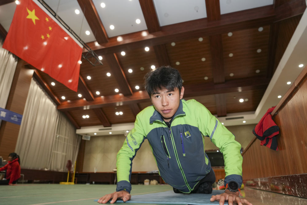 2026年2月19日,次旦玉珍在米蘭-科爾蒂納冬奧會滑雪登山女子個人短距離比賽前熱身。新華社記者 顏麟蘊(yùn) 攝