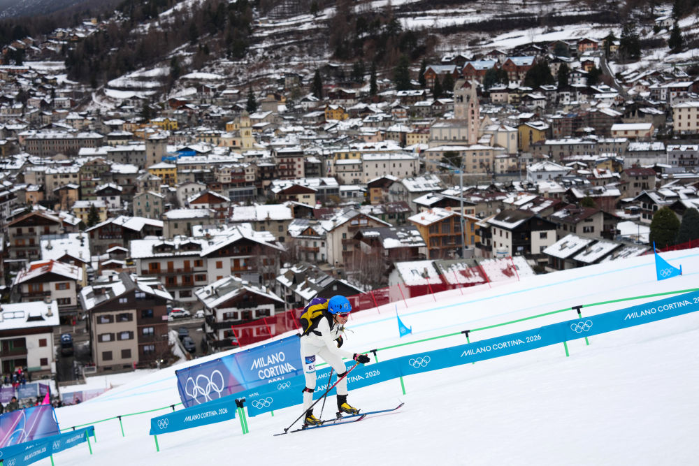 2026年2月21日,次旦玉珍在米蘭-科爾蒂納冬奧會滑雪登山混合接力比賽中。新華社記者 胡虎虎 攝