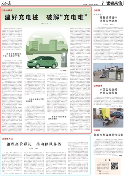 今年3月20日,《人民日報》讀者來信版“金臺視線”欄目《建好充電樁 破解“充電難”》一文,在消費者個人安裝新能源汽車充電樁方面,關(guān)注了多位“人民投訴”平臺用戶吐槽“物業(yè)不配合業(yè)主安裝充電樁以及個人充電樁的維護管理不到位”等問題。