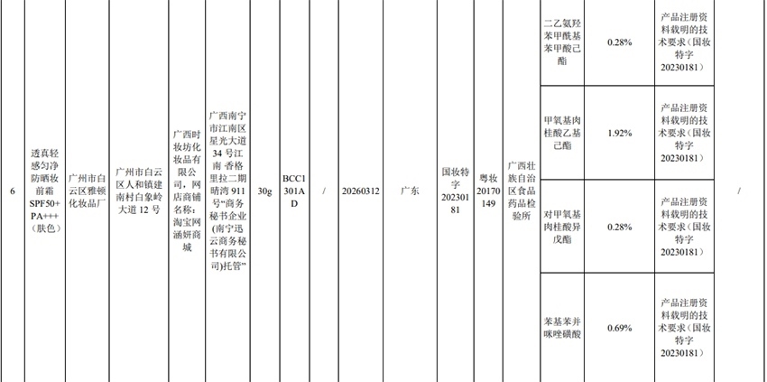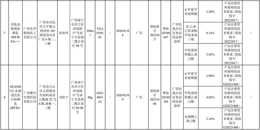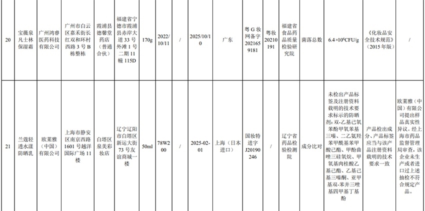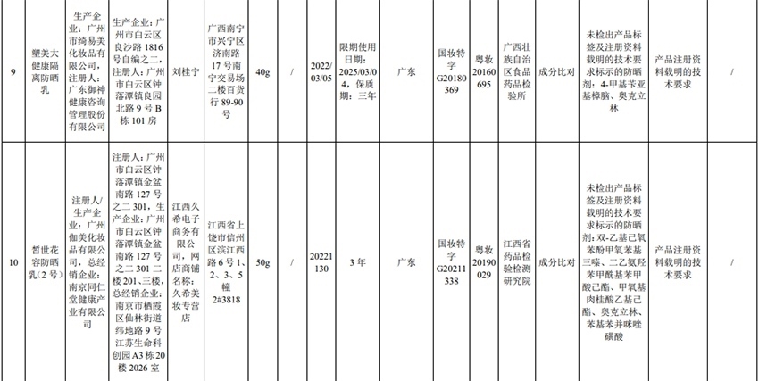 記者注意到,其中,產(chǎn)品標簽標示為歐萊雅(中國)有限公司生產(chǎn)的蘭蔻輕透水漾防曬乳(標示批號:78W200)“未檢出產(chǎn)品標簽及注冊資料載明的技術要求標示的防曬劑”;產(chǎn)品標簽標示為朋友(上海)化妝品銷售有限公司進口的普柔瑪絲特染發(fā)膏(配合普蓉斯綈雙氧乳)(標示批號:7X15)“檢出產(chǎn)品標簽及注冊資料載明的技術要求未標示的染發(fā)劑”;產(chǎn)品標簽標示為資生堂(中國)投資有限公司經(jīng)銷的安熱沙金燦倍護防曬啫喱(標示批號:1356TD)“產(chǎn)品標簽與注冊資料載明的技術要求不一致”、“未檢出產(chǎn)品標簽標示的防曬劑”、“未檢出注冊資料載明的技術要求標示的防曬劑”。