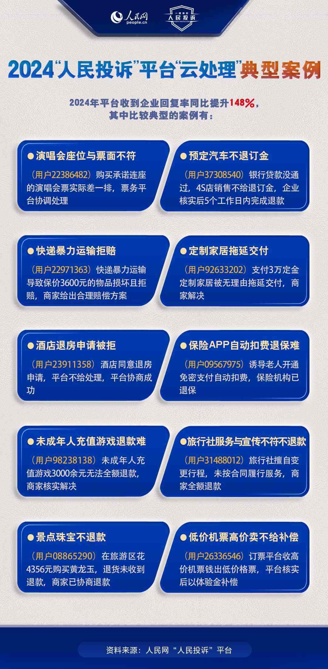 一年來,包含上述典型案例的各消費(fèi)領(lǐng)域投訴通過“人民投訴”平臺(tái)得到了有效解決,消費(fèi)者實(shí)現(xiàn)了高效、高質(zhì)量維權(quán)。