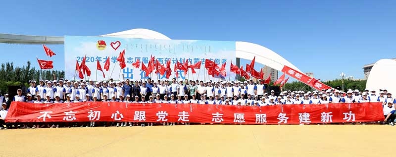 7月29日,2020年內(nèi)蒙古大學(xué)生志愿服務(wù)西部計(jì)劃志愿者出征儀式在呼和浩特舉行,來自區(qū)內(nèi)外高校的部分西部計(jì)劃志愿者代表和旗縣項(xiàng)目辦負(fù)責(zé)人參加。