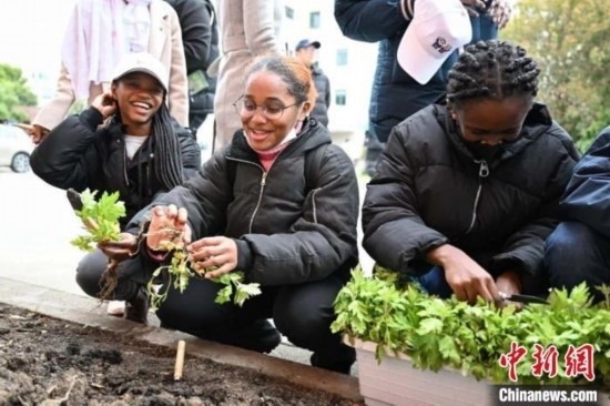 同濟大學的留學生們一起種下艾草、杜仲等中草藥,零距離感受中醫(yī)文化的奇妙之處。同濟大學供圖