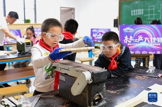 當(dāng)日,內(nèi)蒙古鄂爾多斯市康巴什區(qū)第四屆中小學(xué)生勞動技能大賽“未來工匠大比拼”活動在康巴什區(qū)青少年發(fā)展中心舉行,來自當(dāng)?shù)?所小學(xué)的100名“小工匠”在創(chuàng)意設(shè)計、木材加工等環(huán)節(jié)中感受勞動之美,學(xué)習(xí)工匠精神。