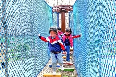 河南安陽(yáng),幼兒園小朋友在西裴村兒童游樂(lè)場(chǎng)玩耍。新華社發(fā)