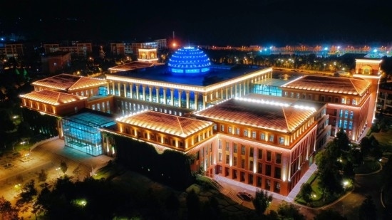 夜晚燈光亮起,閃耀的穹頂輪廓映在黑暗中,最上方的星空熠熠生輝,在館藏約為227萬(wàn)冊(cè)圖書館仰止樓,遨游書海思緒翩飛,如游宇宙繁星,廣闊無(wú)垠。