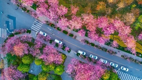 云南大學(xué)校園內(nèi)櫻花爛漫。云南大學(xué)供圖