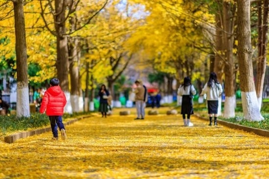 漫步于云南大學(xué)的銀杏大道,感受秋日浪漫。云南大學(xué)供圖