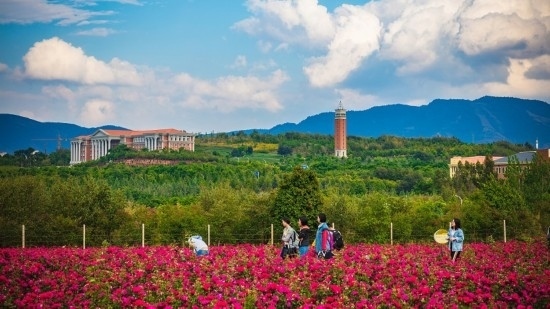 云南大學(xué)校內(nèi)的玫瑰花田。云南大學(xué)供圖