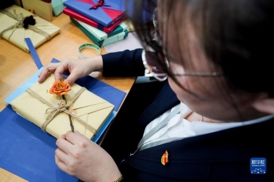 4月12日,工作人員精心制作“換書(shū)大集”上的新書(shū)盲盒。
