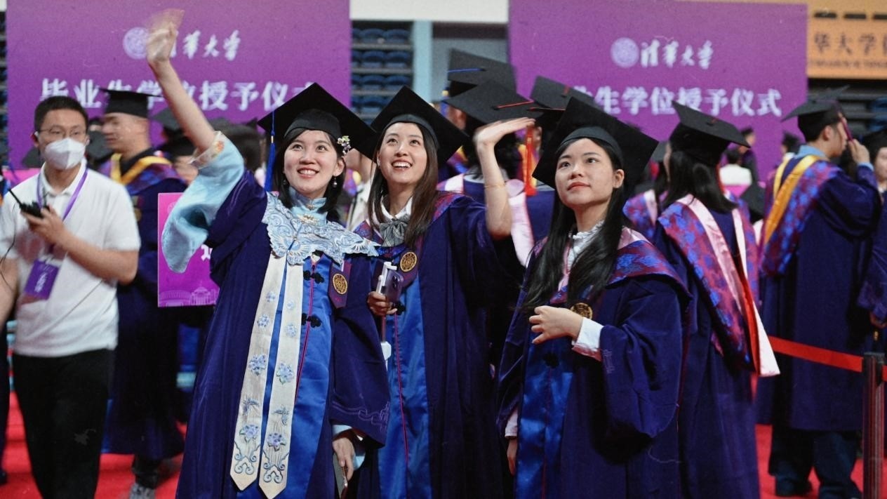 畢業(yè)生們?cè)谝黄鸷嫌啊G迦A大學(xué)供圖