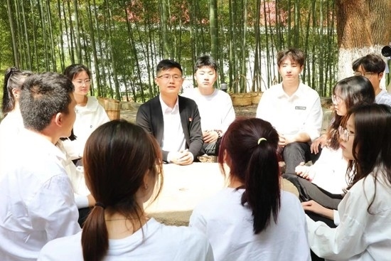 最近,該校馬克思主義學(xué)院教師宋曉龍帶著20多名同學(xué)沉浸在校內(nèi)的蒼翠竹海中上起了思政課。