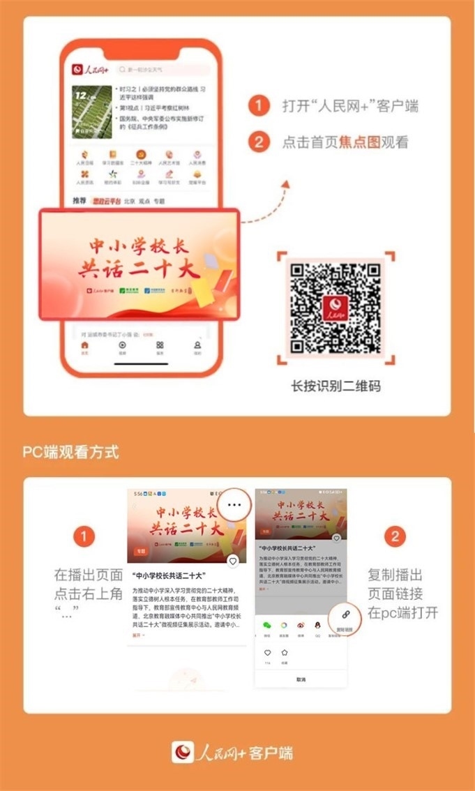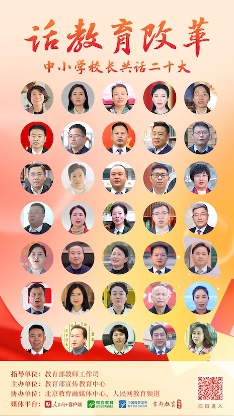 5月12日起,“人民網(wǎng)+”客戶端推出“中小學(xué)校長(zhǎng)共話二十大”專題節(jié)目,每日11:00上新,圍繞黨的領(lǐng)導(dǎo)、鑄魂育人、教育改革、教育公平、強(qiáng)師興校等話題述成績(jī)、言感悟、談現(xiàn)狀、話未來,切實(shí)把黨的二十大精神轉(zhuǎn)化為辦學(xué)治校、教書育人的實(shí)際行動(dòng)。讓我們一起傾聽全國百位中小學(xué)校長(zhǎng)共話二十大,共同描繪教育事業(yè)發(fā)展的新藍(lán)圖。