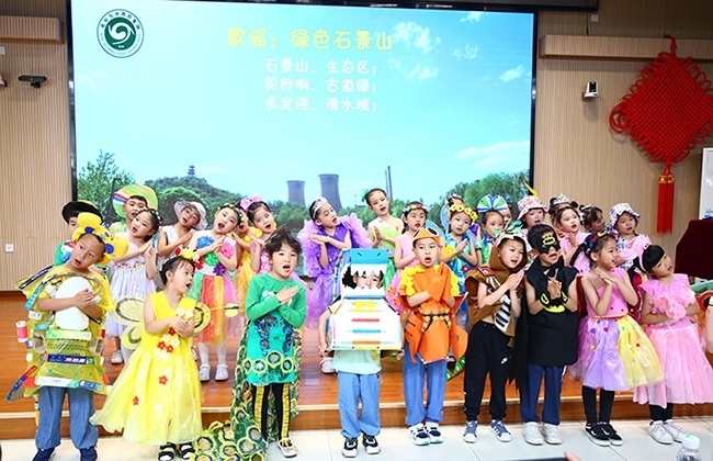 此外,九中教育集團(tuán)所屬的首鋼幼教金頂街園等幼兒園的孩子們上演了精彩的“幼兒生態(tài)保護(hù)時(shí)裝秀”。他們身穿利用生活廢棄物品精心制作成各種造型的服裝,巧妙傳遞出了“變廢為寶”的環(huán)保理念。歌謠表演《綠色石景山》也為孩子們上了一堂生動的爭做環(huán)保小衛(wèi)士、友愛相伴小動物的課程。