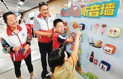 日前,福建省廈門市婦聯(lián)攜手相關部門舉辦“快樂‘六一’ 安全童行”2023年“六一”體驗式生命教育趣味游園活動。圖為小朋友們在參加食品安全聽音墻活動。 徐 林攝 |