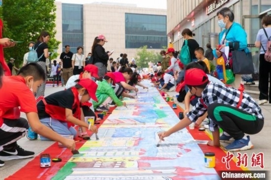 “六一”兒童節(jié)系列活動期間,天津開展少年兒童百米長卷繪制活動。王在御 攝