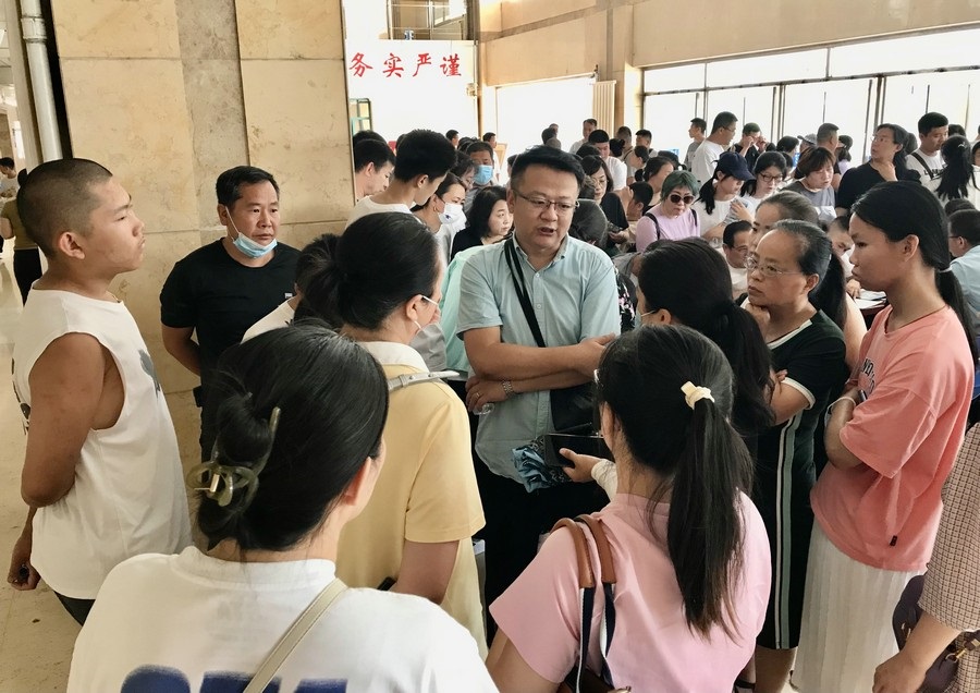 上午8:00,家長(zhǎng)和同學(xué)們陸續(xù)走進(jìn)學(xué)校。截至9:00,學(xué)校3個(gè)報(bào)告廳、教學(xué)樓二樓大廳、家長(zhǎng)接待室、校南門(mén)家長(zhǎng)咨詢點(diǎn),共接待家長(zhǎng)超1500人次。