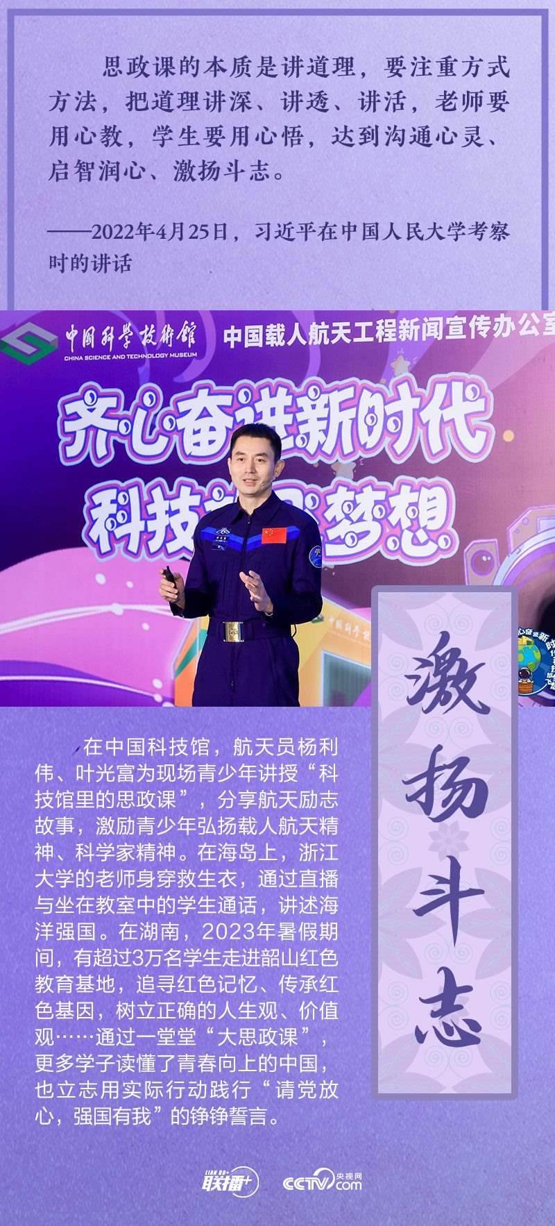 如何辦好新時代思政課?總書記有明確部署,全國各地也進(jìn)行了頗多有益探索。在2023年“把青春華章寫在祖國大地上”網(wǎng)絡(luò)主題宣傳和互動引導(dǎo)活動舉辦之際,央視網(wǎng)《聯(lián)播+》與您一同走進(jìn)豐富多彩的思政課堂。