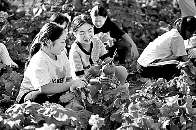河北省樂亭縣新寨鎮(zhèn)蘭坨小學學生在“校園農(nóng)場”收獲蘿卜。新華社發(fā)