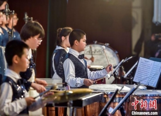 該交響管樂團(tuán)成立于2014年,平均年齡10歲,是一支非常年輕有朝氣的隊伍。中新網(wǎng)記者 劉新 攝