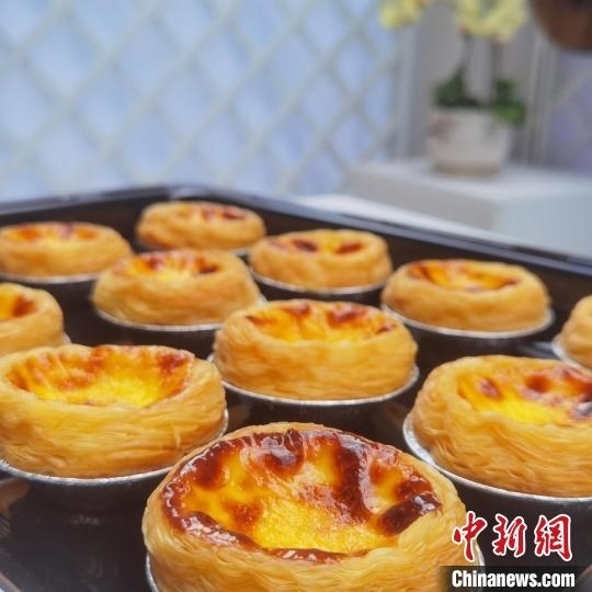 “圓夢(mèng)號(hào)”餐車上珠海市社會(huì)福利中心成年殘障孤兒制作的蛋撻。廣東省民政廳供圖