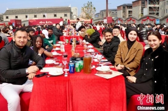 外國留學(xué)生體驗(yàn)“路橋區(qū)首屆‘辣呵呵’千人宴”。阮雅妮 攝