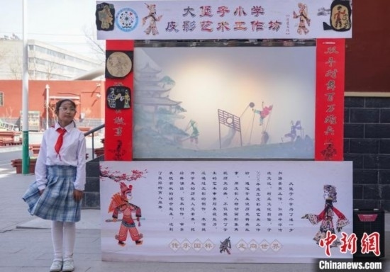圖為在西寧市大堡子小學(xué),學(xué)生表演“蹴鞠”皮影戲。馬銘言 攝