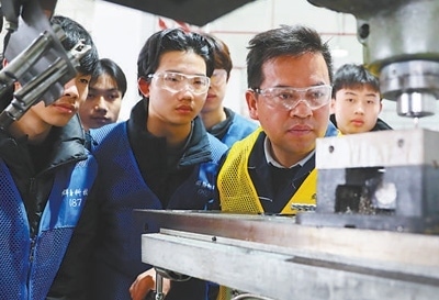 湖南省永州市新田縣產(chǎn)業(yè)開發(fā)區(qū),新田縣職業(yè)中等專業(yè)學(xué)校學(xué)生在學(xué)習(xí)機(jī)床操作技術(shù)。劉貴雄攝(新華社發(fā))