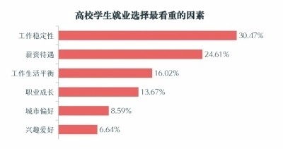 對(duì)我國(guó)東、中、西部地區(qū)7個(gè)省區(qū)市的14所本科院校、4所??圃盒#采w研究生、本科生、??粕惾后w,隨機(jī)抽樣的1829份調(diào)查問(wèn)卷顯示,除工作穩(wěn)定性、薪資待遇外,工作生活平衡、職業(yè)成長(zhǎng)、所在城市、興趣愛(ài)好等,也是高校學(xué)生就業(yè)選擇時(shí)看重的因素。