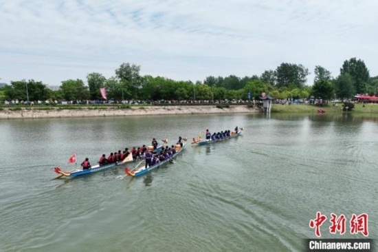 5月2日,來(lái)自長(zhǎng)三角地區(qū)的12所高校的龍舟隊(duì)齊聚安徽肥西,展開(kāi)了一場(chǎng)龍舟競(jìng)技。(無(wú)人機(jī)照片)陳家樂(lè)攝