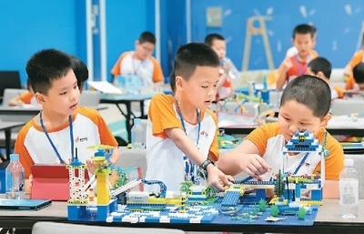 選手在參加小學組創(chuàng)意賽。