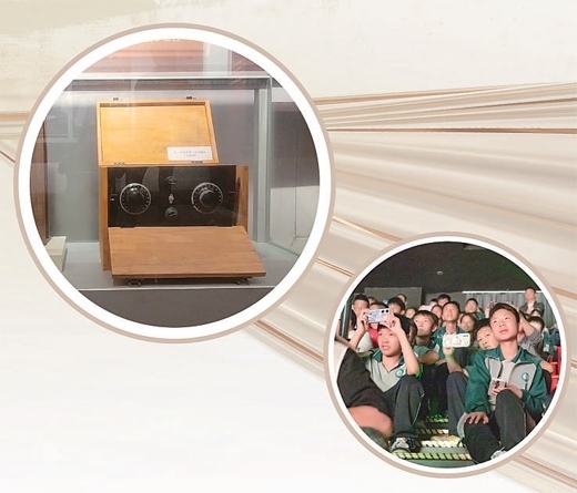 上圖:遵義會議會址展出的“半部電臺”復制品。下圖:學生們觀看《偉大轉(zhuǎn)折》演出。以上圖片均為遵義市委宣傳部提供