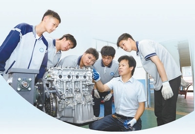 江西萍鄉(xiāng)市湘東中等專業(yè)學(xué)校,學(xué)生在學(xué)習(xí)發(fā)動機(jī)拆裝與檢測技能。任乾良攝(影像中國)