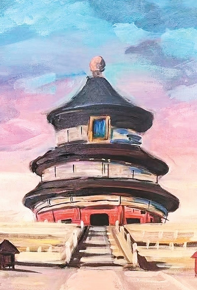 夕陽余暉中,新西蘭華裔青少年們在天壇祈年殿紅墻邊席地而坐,揮動(dòng)畫筆,捕捉眼前美景?!跋﹃栂缕砟甑罡@壯麗,我希望通過我的畫筆展現(xiàn)出它的雄偉?!眳⒃L團(tuán)學(xué)生秦曉寓說。