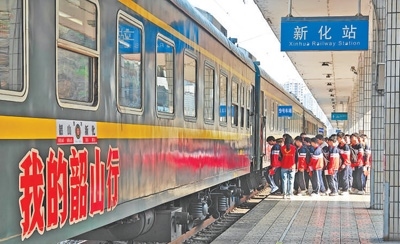 伴著汽笛長(zhǎng)鳴,一列紅色研學(xué)專列駛進(jìn)韶山站。這是中國(guó)鐵路廣州局集團(tuán)有限公司推出的“我的韶山行”紅色研學(xué)專列。車廂內(nèi),“乘風(fēng)破萬卷,追風(fēng)正少年”標(biāo)語引人注目。打造“書香列車”主題車廂,在餐車設(shè)立“書香驛站”,將吧臺(tái)改造成“陽光書社”,設(shè)計(jì)留言帖、主題打卡點(diǎn),發(fā)放文創(chuàng)紀(jì)念票卡……列車寓學(xué)于途,開設(shè)韶山站現(xiàn)場(chǎng)教學(xué)點(diǎn),打造火車上的流動(dòng)課堂。