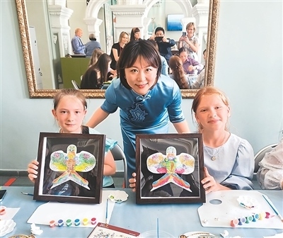 不久后的9月,“東方雅韻——中國文化藝術(shù)展”2.0版本及“天涯共此時”中秋文化體驗(yàn)活動在西班牙馬德里中國文化中心舉辦。天津博物館首次將體驗(yàn)工坊帶進(jìn)馬德里社區(qū),當(dāng)?shù)貎和跉g聲笑語中沉浸式感受中華傳統(tǒng)技藝,一位當(dāng)?shù)嘏W⒌赜猛赜」ぞ邚?fù)刻楊柳青木版年畫,她指尖起落間,寓意吉祥的“連年有余”圖案逐漸清晰。工坊結(jié)束后,大家拿著自己拓印的團(tuán)扇、親手捏制的中秋兔子與老師合影,還放飛了自己動手著色的迷你風(fēng)箏。