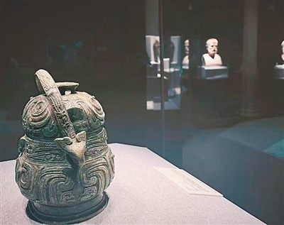 她的這番話讓我回想起開展當(dāng)天的凌晨。我站在展廳中央,環(huán)顧四下,看著那些跨越山海而來的文物和我們院藏文物一起,在燈下泛著溫潤的光,像是散落在時間長河里的星辰。那一刻,我覺得自己是個幸運(yùn)的拾星者,得以用展線作銀梭將它們串聯(lián)成新的星圖——這星圖里有雅典娜的榮光,也有西王母的“神性”;有陶繪酒罐的多彩,也有青銅酒器的厚重。不同文明的星光交匯于一方展廳間,文物雖不會說話,但它們的存在本身就是擲地有聲的宣言——文明的故事從來不是孤立的敘事,文明更從無高下之分,雖有山海之隔,仍可同頻共振。