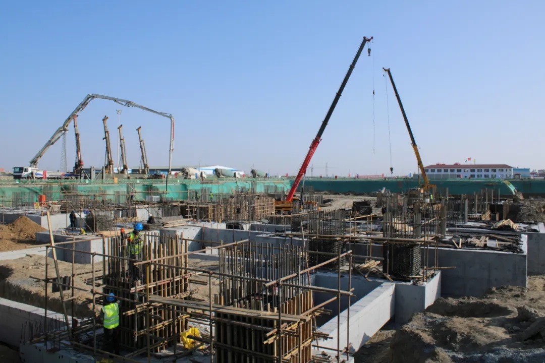 主廠房4號(hào)鍋爐承臺(tái)澆筑緊張進(jìn)行中