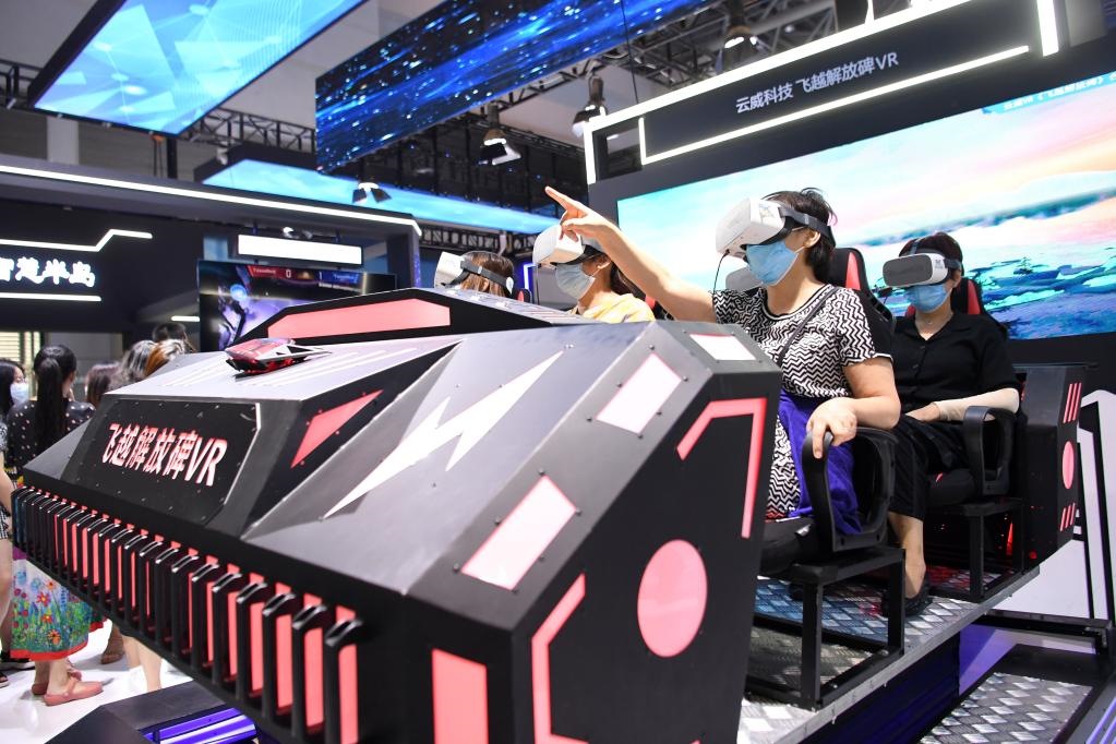 觀眾在2021智博會上通過VR技術體驗重慶美景。新華社記者 唐奕 攝