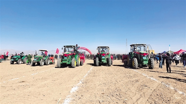 3月2日上午,2022年全區(qū)“春播第一耬”暨大豆玉米帶狀復(fù)合種植機(jī)具演示現(xiàn)場會在巴彥淖爾市杭錦后旗雙廟鎮(zhèn)增光村“萬畝綠色小麥?zhǔn)痉痘亍迸e行,由此拉開了河套灌區(qū)春小麥播種工作的序幕,也標(biāo)志著全區(qū)小麥春播從巴彥淖爾市開始由西向東陸續(xù)展開。