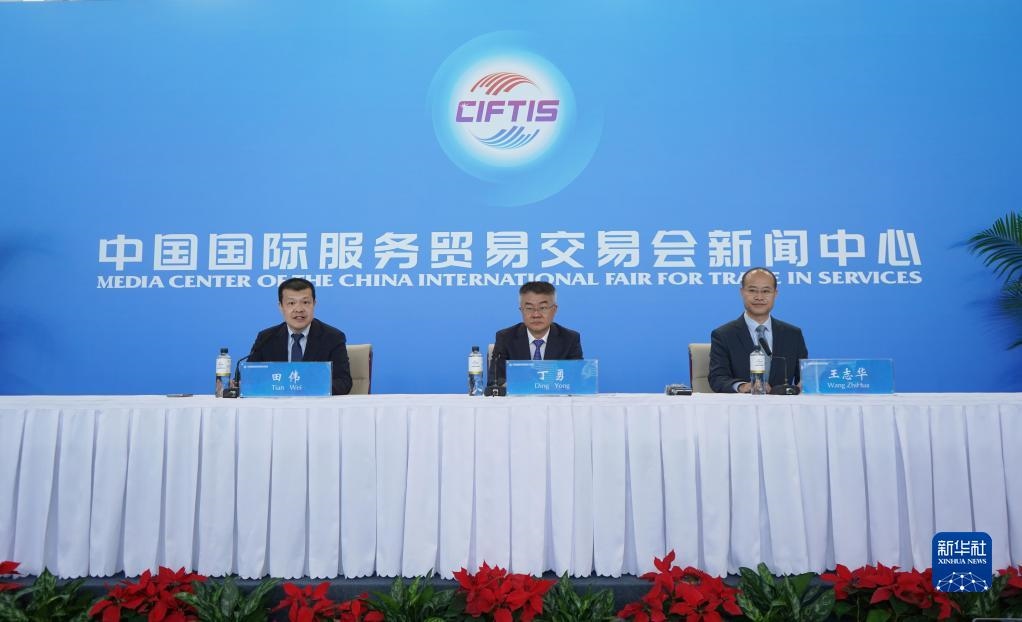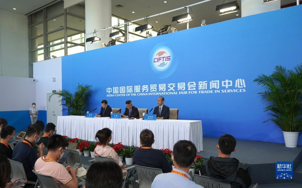 這是9月5日拍攝的2022年中國國際服務(wù)貿(mào)易交易會新聞發(fā)布會現(xiàn)場。新華社記者 金皓原 攝