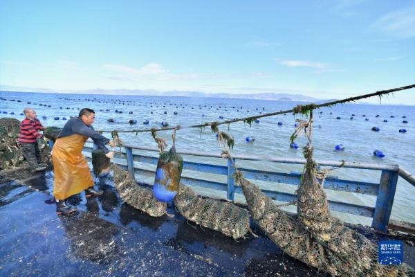 在福建省霞浦縣三沙鎮(zhèn)海域,采蠔工轉(zhuǎn)運(yùn)采收的生蠔(10月22日攝)。新華社記者 姜克紅 攝