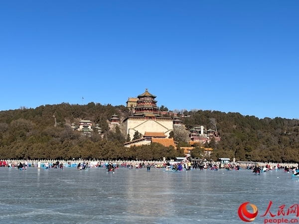 春節(jié)期間游客在頤和園冰場上游玩。人民網(wǎng)記者 杜燕飛攝